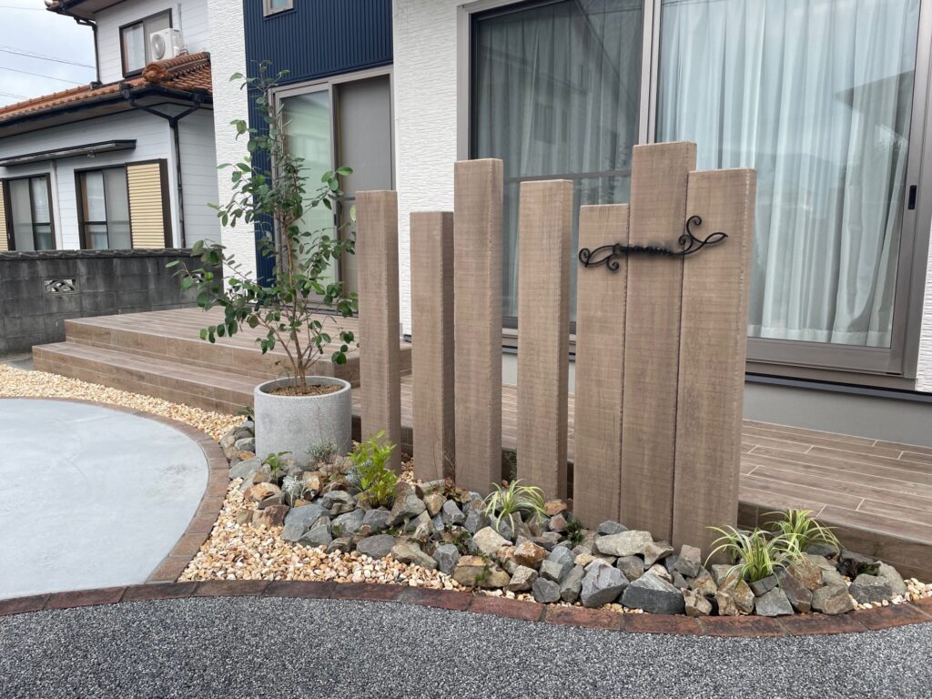 既存のお庭のデザインを残しつつ、新たに駐車スペースを確保したいとのご要望でリガーデンさせて頂きました。