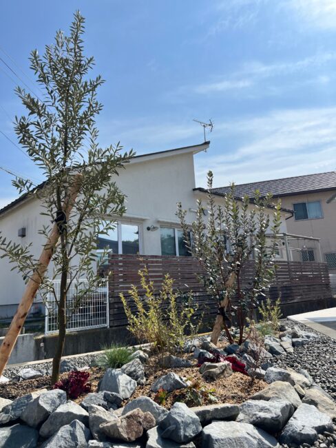 メインツリーはオリーブの木とフェイジョアの木です。どちらもシルバーリーフが美しい果樹です。