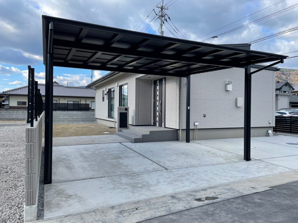 カーポートから玄関までの距離が短く、雨の日でも濡れにくい日常の使いやすさとデザイン性を両立した配置に。